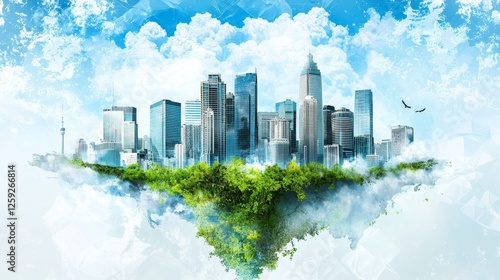 Urban skyline transformation city landscape digital art nature integration aerial view eco-friendly concept