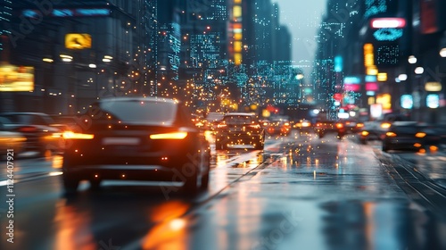 transportation, night time, traffic, photo, dynamic, night, rain, light, vehicle, road, reflections, motion, weather, lifestyle, technology, sound, movement, people, car, skyscraper, design, infrastructure, metropolis, society, energy, innovation, travel, exploration, commuting, optical, aesthetic, digital, connectivity, smart, life, environmentally, friendly, eco, sustainability, future, public, route, journey, life events, growth, change, planning, excitement, pulse