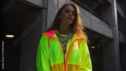 Urban Vibe: Woman in Neon Against Concrete