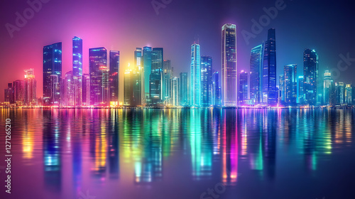 urban, view, colourful, light, night, city landscape, bright, neon, skyscraper, building, street light, city, nightlife, illuminated, reflecting, window, glowing, traffic, modern, architecture, glittering, street, road, skyline, night sky, energy, vibrant, atmosphere, night time, urban life, cosmopolitan, viewpoint, beautiful, metropolis