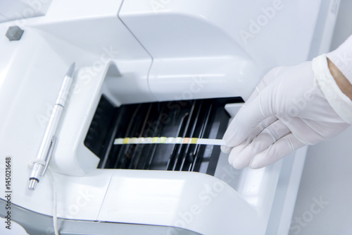 urine, test, check, machine, analysis, sample, paper, indicator, modern, health, laboratory, analyser, hospital, hand, close, closeup, detail, research, medicals, laboratory, scientist, technician, chemist, chemistry, piss, urine, biotechnology, people, female, technology, medicine, equipment, biology, professional, education, health care, control, examine, chemical, infection, scientific, science, person, microbiology, white, glove, doctor, woman, work