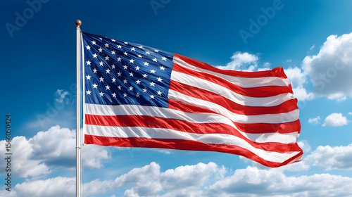 US flag with clouds background