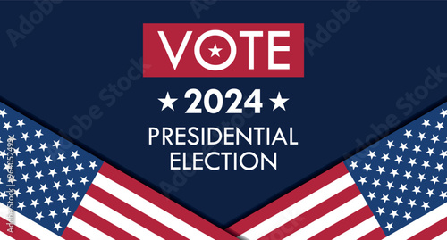 USA 2024 Presidential Election background with American flag colors design. Election event banner, card, poster, template, voting communication, background. Vote day, November 5. Vector illustration.