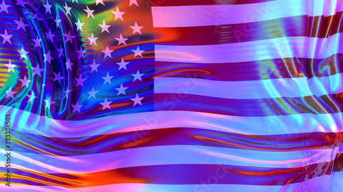 USA America flag with LGBT rainbow reflections. Gay friendly country. 3d render illustration