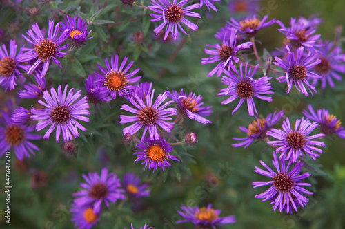 USA, New York City, purple flowers