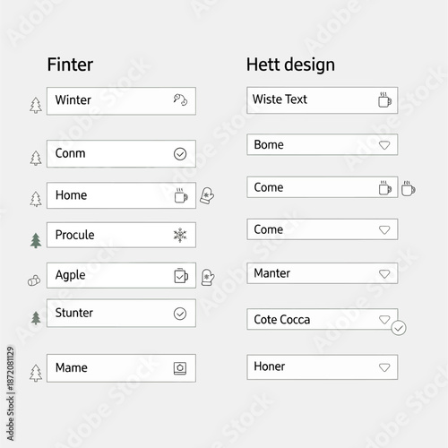 User Interface Elements with Text Fields and Icons for Data Input and Selection.