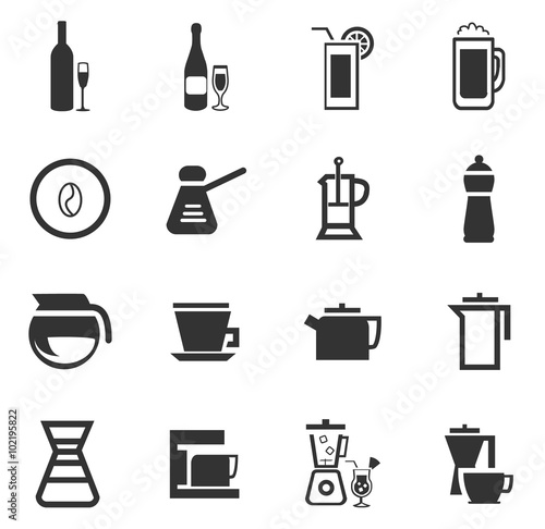 champaign, wine, cocktail, marina, beer, shaker, kettle, tea, blender, hot drink, cup, teapot, set, symbol, food, beverage, vector, black, pictogram, kitchen, eatery, menu, icon, chef, dinner, cooking, dish, preparation, signs, breakfast, design, drink, utensil, cake, fork, dessert, soup, bottle, bread