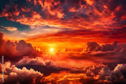 Utterly Spectacular Sunset with colorful clouds lit by the sun. Bright epic sky, Generative AI