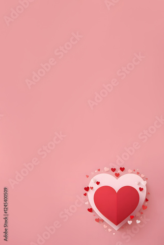 Valentine’s Day Elegant Heart – Red Ribbon Heart Shape on Background Romantic Heart Frame with Floral & Filigree