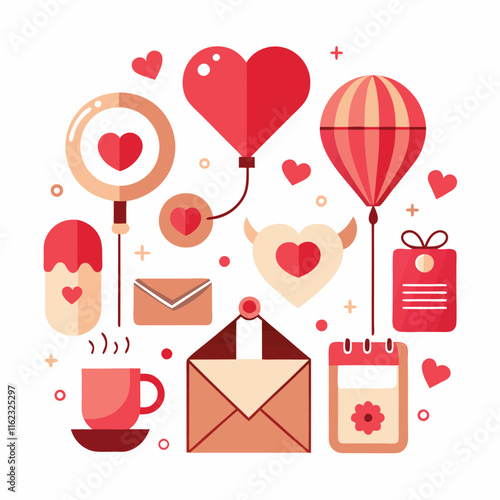 Valentine's Day Icon Set: Love-Themed Vectors with Hearts