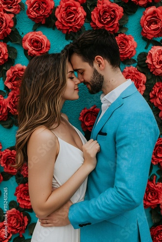 Valentine's Day Romantic Couple Embrace Teal Rose Wall Love Wedding