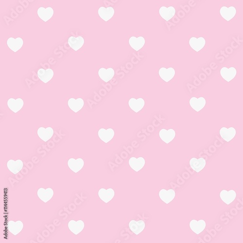 Valentine’s Day seamless pattern design, white hearts composition on colourful background. Background texture.