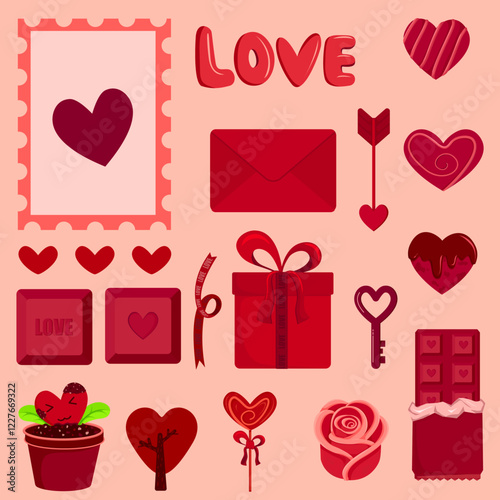 Valentine's Day Sticker Set: Heart, Rose, Gift, Letter