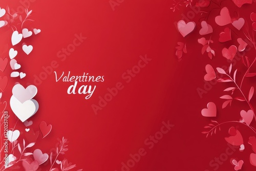 Valentines sale vector banner template. "Valentines day" store discount promotion with white space for text and hearts elements in red background. Vector illustration