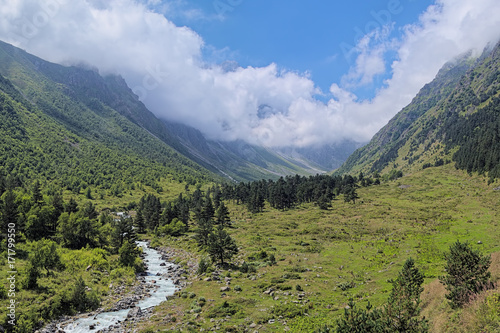 Valley of Bilyagidon river in the mountains of Digoria, Caucasus, Republic of North Ossetia-Alania, Russia