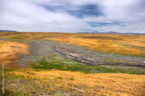 river, vale, mountain, grass, yellow, field, meadow, mongolia, panorama, plateau, russia, siberia, steppe, unesco, vibrant, up high, altai, autumn, background, blue, bright, cloud, day, extreme, freedom, heritage, high, highland, hiking, idylli, journey, landscape, nature, orange, outdoors, remote, reserve, scenic, sky, space, summer, tour tourism, travel, view, wilderness, minimalism, stone