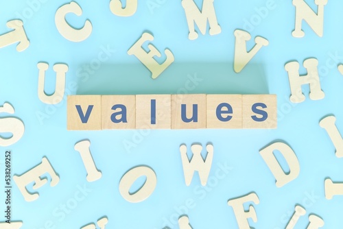 word, value, value, company, business, organisation, concept, core, corporate, ethic, typography, profile, creative, topview, composition, spelling, copy space, blue, background, wood, wooden, block, communication, letter, presentation, visual, icon, idea, goal, topic, work, culture, principle, strategy, people, success, code, conduct, industry, statement, text, ideology, guideline