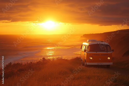 van, road, ocean, parked, vehicle, transport, water, shore, summer, travel, coastal, blue, sky, scenic, vacation, horizon, nature, journey, adventure, exploration, trip, holiday maker, destination, lifestyle, coast, stationary, sea, drive, beach, picturesque, calmness, peaceful, paradise, tropical
