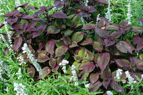 variegated, purple, foliage, coleus, plant, salvia, flower, spike, summer, plant, leaf, leaf, garden, flora, green, growth, bush