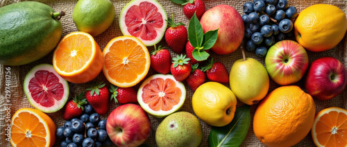 fruit, apple, orange, strawberry, blueberry, pear, fresh, colourful, healthy, natural, burlap, arrangement, food, harvest, seasonal, market, nutrient, organic, snack, diet, antioxidant, breakfast, aesthetic, yellow, red, green, outdoors, agriculture, blossom, ripe, fresh produce, tropical, lemony, sweet, delicious, culinary, alimentary, dessert, garnish, citrous, variety, healthy eating, wholesome, epicure, decoration