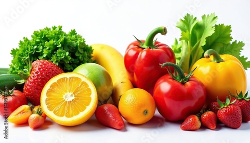 Variety of organic fruits & vegetables isolated, ingredients, vegetable