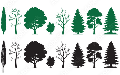tree, tree, silhouette, plant, forest, wood, nature, shape, form, green, black, isolated, vector, evergreen, deciduous, cypress, oak, pine, growth, trunk, foliage, vegetation, tree branch, branch, bare, illustration, drawing, design, graphic, element, natural, timberland, environment, ecological, forestry, landscape, botanical, symbol, icon