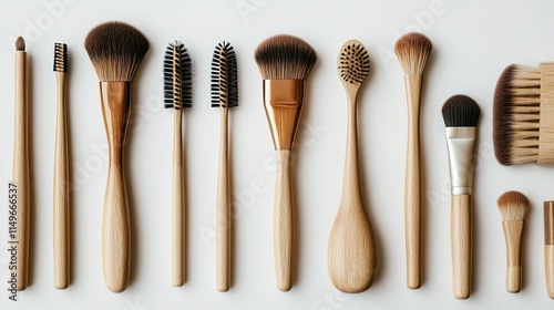 Variety of Wooden Handle Makeup Brushes on a Light Background