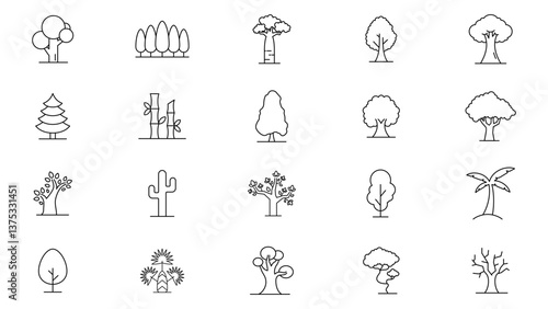 set, vector, icon, illustration, collection, tree, design, nature, element, forest, plant, isolated, environment, graphic, green, flat, eco, garden, tree branch, symbol, spring, leaf, natural, season, summer, wood, cartoon, style, decorative, various, pine, oak, botany, landscape, growth, organic, cute, flower, signs, doodle, drawing, fir, fresh, editable