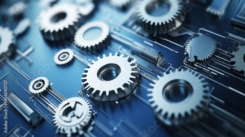 gear, cog, sprocket, bolt, nut, engineering, technology, industrial, precision, metallic, blue background