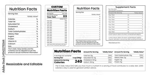 Various Nutrition Labels, Supplement Facts Blank Templates Collection Editable