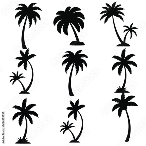 silhouette, illustration, black, collection, summer, vector, nature, tropical, isolated, exotic, plant, design, set, beach, coconut, graphic, leaf, palm, tree branch, vacation, tree, background, foliage, symbol, element, paradise, landscape, botany, flora, art, forest, travel, island, white, various, floral, icon, trunk, drawing, natural, tropics, object, monochrome, environment, cartoon, hawaii, outline, jungle
