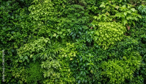 Various plants form lush green wall garden indoors, highlighting sustainability and natural beauty.