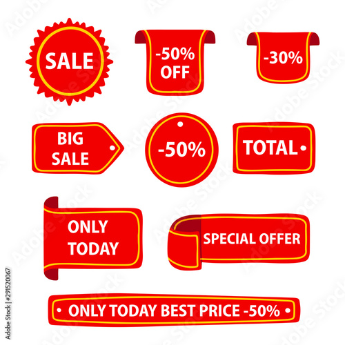round, decoration, deal, store, market, collection, art, web, product, discount, price, best, sticker, sale, banner, ribbon, vector, set, isolated, background, illustration, label, element, tags, design, special, offer, shop, flag, advertising, promotion, badge, message, business, modern, signs, icon, buy, template, shape, paper, red