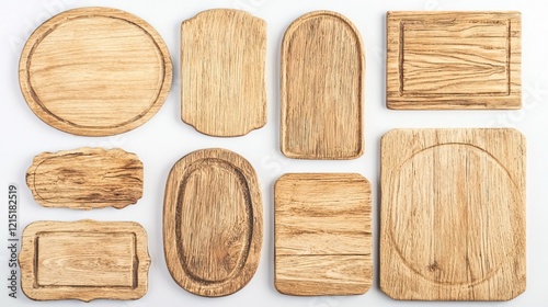 Various Wooden Plaques and Boards on White Background for Decor Use