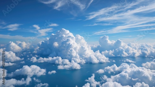 sky, blue, cloud, white, sea, tranquil, aerial, view, scenic, space, clear, fluffy, nature, horizon, water, peaceful, weather, background, bright, sunshine, daylight, outdoors, summer, calmness, beauty, relaxation, serenity, environment, landscape, freshness, air, freedom, calm, vista, scenery, copy, graphic, composition, picturesque, idylli, atmosphere, vacation, escape, travel, artistic, palette, breezy, ocean, coastline
