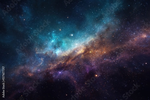 Vast cosmic landscape filled with colorful nebulae and shining stars suspended in the endless void of space at the edge of the universe