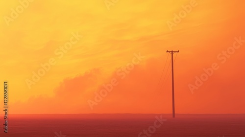 huge, plain, orange, sky, landscape, solitary, power, pole, dusk, horizon, tranquil, scenic, nature, beauty, atmospheric, rural, solitude, warm, colours, sunset, calm, distant, view, calmness, peaceful, minimalism, simple, light, gradient, summer, idylli, twilight, electricity, line, outdoors, weather, cloud, environment, picturesque, scene, visual, tone, serene, quiet