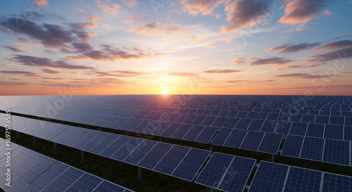 solar, energy, power, panel, farm, field, renewable, sun, sunset, sky, cloud, landscape, nature, technology, clean, green, future, sustainable, electricity, industry, generation, alternative, environment, natural, light, warm, orange, blue, huge, expanse, modern, development, agriculture, station, grid, infrastructure, bright, dawn, dusk, horizon, sustainability, innovation, resource, investment, progress, system, production