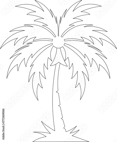 palm, tree, tropical, plant, nature, botany, leaf, frond, trunk, growth, life, organic, natural, environment, ecosystem, island, beach, coast, vacation, holiday, summer, sun, warm, exotic, outline, drawing, vignetting, art, design, graphic, symbol, simple, minimalist, clean, clip art, element, shape, form, botanical, oasis