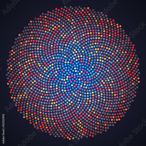 Vector abstract illustration with dots on dark background. Abstract Fibonacci dotted flower.
