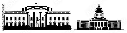 Vector Architectural illustrations of government buildings with detailed facades and domes.
