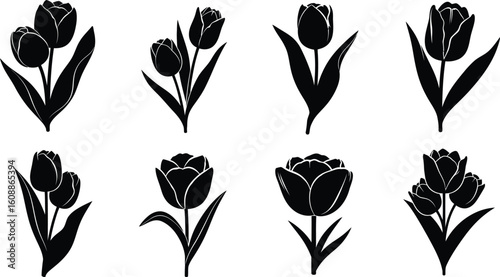 tulip, flower, silhouette, floral, plant, bloom, blossom, isolated, graphic, design, nature, symbol, spring, decoration, leaf, elegant, botanical, artwork, outline, collection
