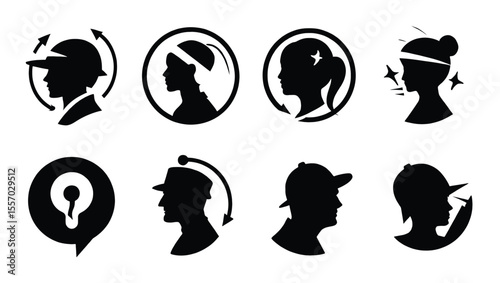 avatar, icon, set, profile, silhouette, head, face, hat, hair, style, design, element, graphic, illustration, person, people, man, woman, female, male, fashion, accessory, modern, minimal, simple, clean
