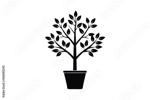 Vector art of a potted plant with leaves and branches isolated a illustration