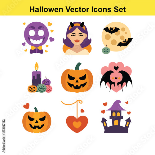 halloween, icon, set, pumpkin, candle, moon, girl, castle, nubes, holiday, autumn, celebration, design, graphic, symbol, signs, element, clip art, cartoon, cute, fun, party, trick, treat, skittish, scarey, face, head, orange, purple, black, isolated, background, drawing, art, festive, season, collection, character, bat, woman, vector