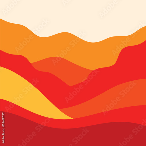 Vector art of a warmtoned abstract landscape with layered mountains and hills