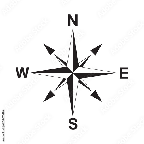 Vector art of compass rose icon isolated on white background for navigation and direction