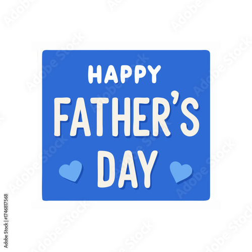 Vector art of happy fathers day message on a blue background with white text and two small blue hearts