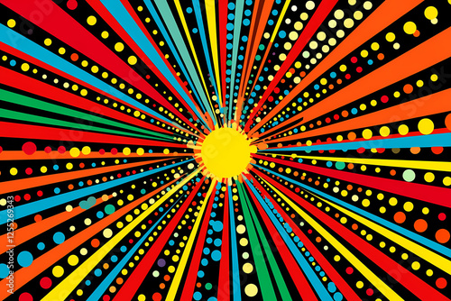 Vector background with grunge, neon comic book lines, dots, and paint splashes. Bright pink, blue, yellow, and black color palette
