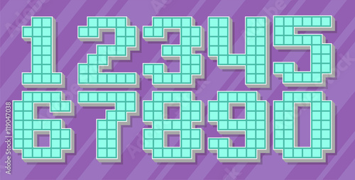 Vector blue pixel number set on violet background